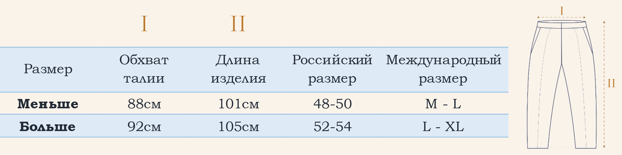 Размер изделия - Меньше